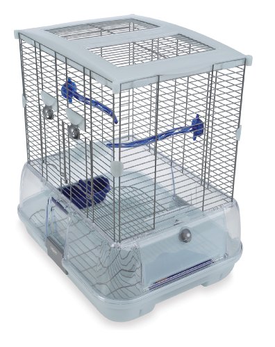 The Vision Small Bird Cage #S01 is a suitable cage for budgies, canaries, lovebirds and finches. It provides your bird with lots of room to move around and Vision makes it easy for you to take care of your bird. Bird movements cause air currents, which flow outwards, and in the case of most standard bird cages these air currents eject waste and seed debris outside of the cage and onto the floor. With Vision Cages, the combination of the debris guard, the deep base and the placement of the seed/water cups helps combat air currents to keep the majority of the waste and debris inside the cage. This reduces the amount of mess and time-consuming clean ups, leaving you more time to enjoy your pet. The Vision Small Bird Cage is a great home for your new bird.